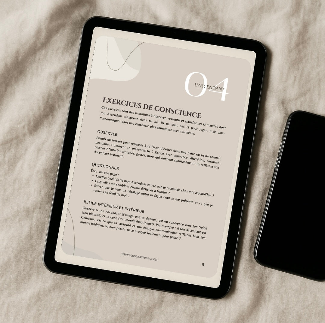 🌿 À travers des explications claires, des exercices de conscience et des pistes d’alignement, tu apprendras à reconnaître ton Ascendant non pas comme un rôle figé, mais comme une danse vivante entre ce que tu es et ce que tu deviens.